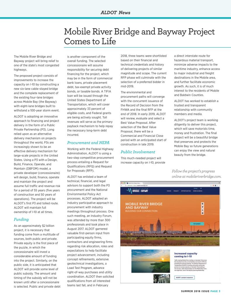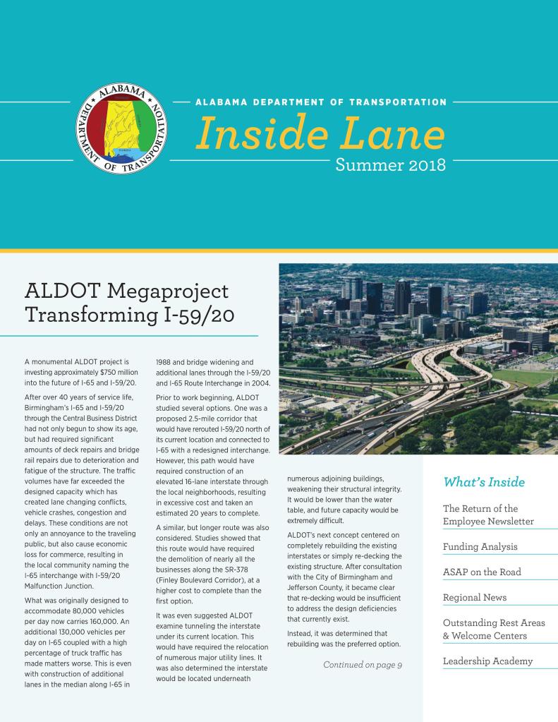 State agencies such as the Alabama Department of Transportation (ALDOT) maintain routes of travel and provide safe transportation systems in the state.