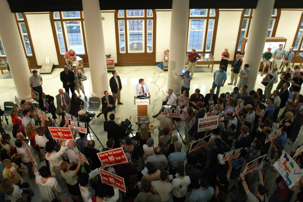 In 1996, after a long break from politics, Riley began his first of three terms as a Republican in the United States House of Representatives. In Alabama’s 2002 primary for governor, he defeated Tim James, the son of former governor Fob James. In the general election, he narrowly defeated the democratic incumbent, Don Siegelman, to become the 52nd governor of Alabama.