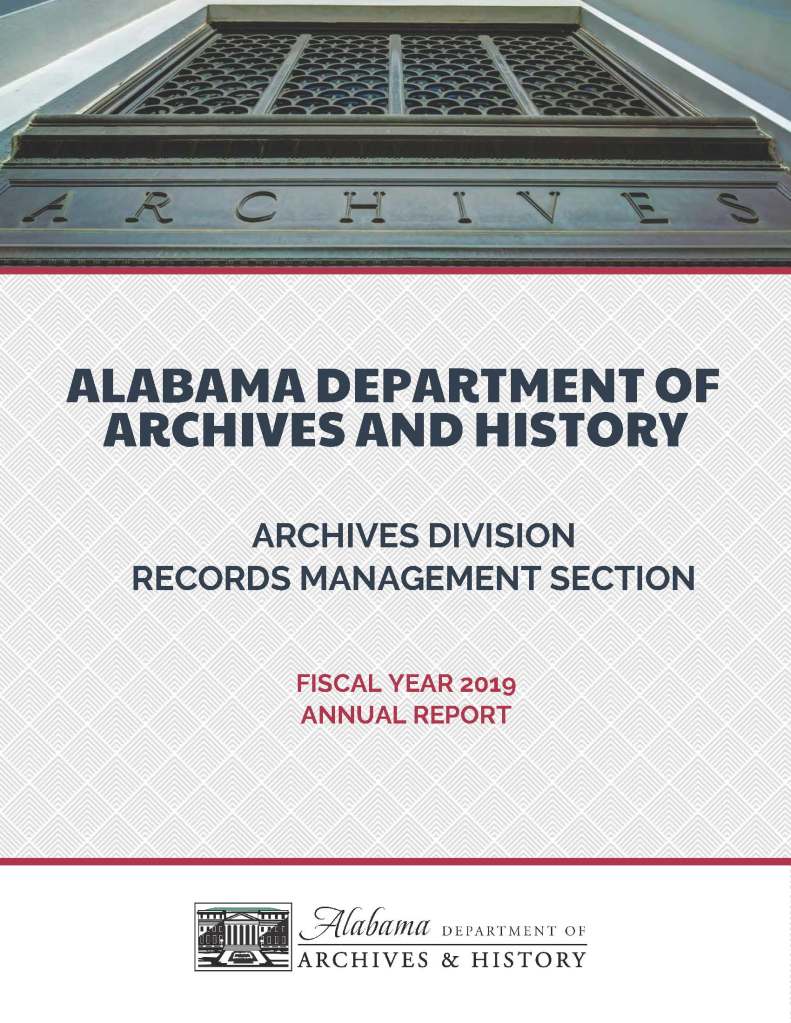The Alabama Department of Archives and History (ADAH) Records Management Section recently completed its first published Annual Report of activities. The Fiscal Year 2019 Annual Report gives readers a look into Archival Appraisal/Records Management work and provides key updates from October 2018 to September 2019.