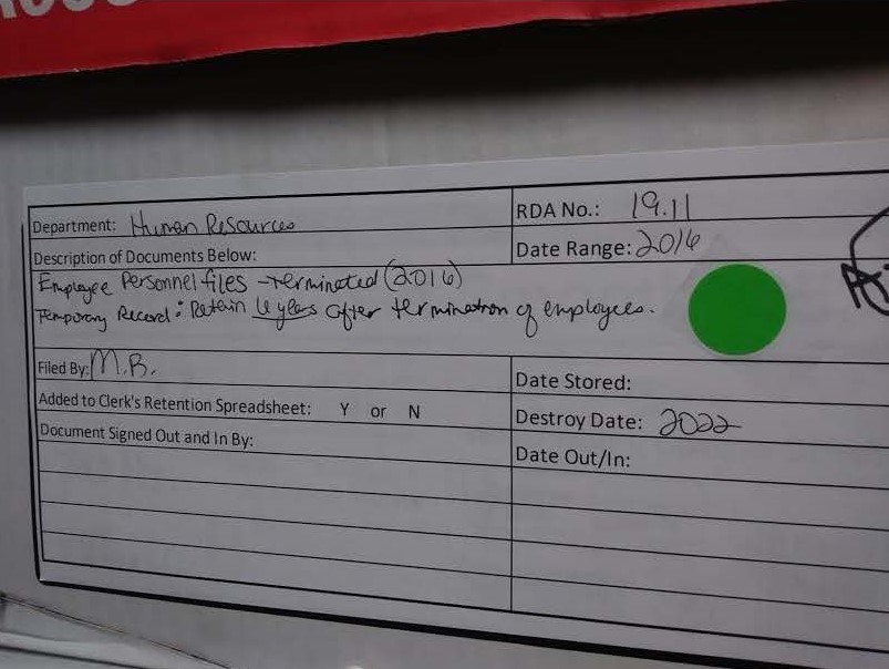 Now that you’ve gained control of the records in your storage room, you have to plan for future additions. No additional records should be added to the storage room without the employee in charge of records management knowing precisely what the records are. All relevant information should be added to the box label before the records are shelved. The records manager must also add the information into the inventory before shelving the new records.
