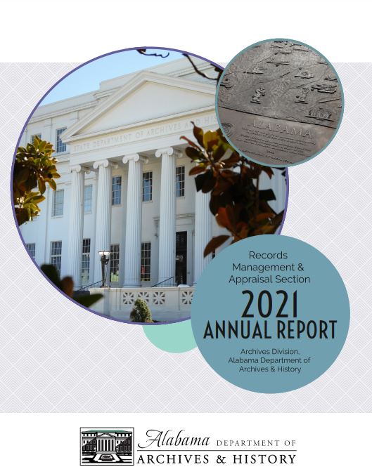 2021 proved to be another turbulent year, with the COVID-19 pandemic continuing to cause upheaval. The Alabama Department of Archives and History (ADAH) deployed flexible and creative strategies in response to these continuing obstacles. The ADAH Records Management Section’s FY2021 Annual Report grants readers a detailed perspective into the section’s output, adaptability, and outreach.